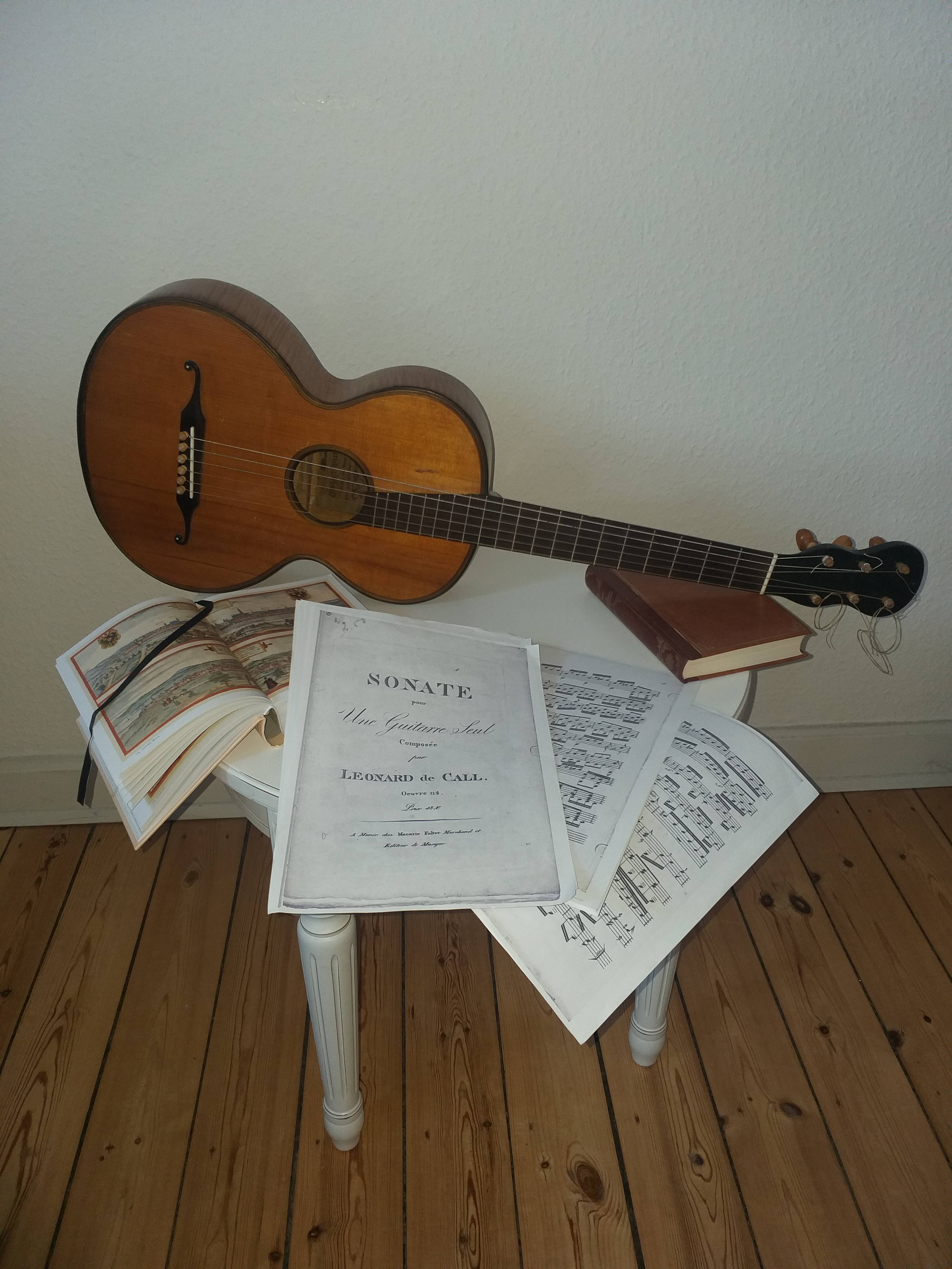 This instrument from 1816, authenticated by Kenneth Brøgger (the foremost specialist of historical Danish guitars) is a masterpiece of craftsmanship, where J.N. Gade put great attention to details, beautiful neck, floreal features typical of 19th century lutherie and ivory frets.